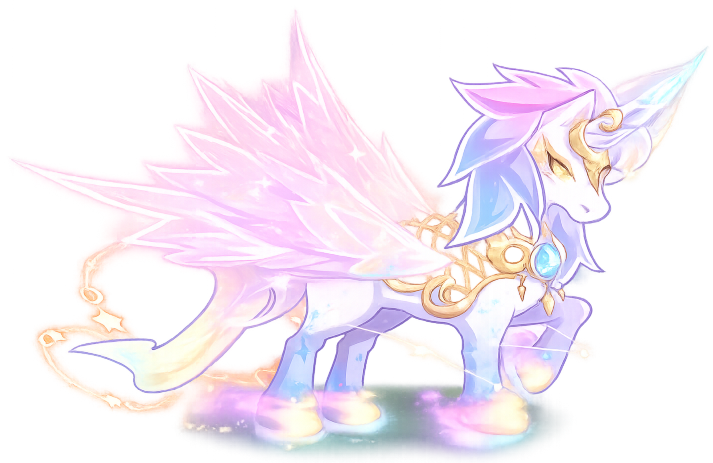 The unicorn spreads its wings every 12s, resisting DMG of the next active skill hit on the Character (excluding Class, Avian, and Summoning Skills), during which the Character gains 50% DEF and ignores all control effectsAfter the unicorn resists DMG, the DEF boost and control immunity effects disappear