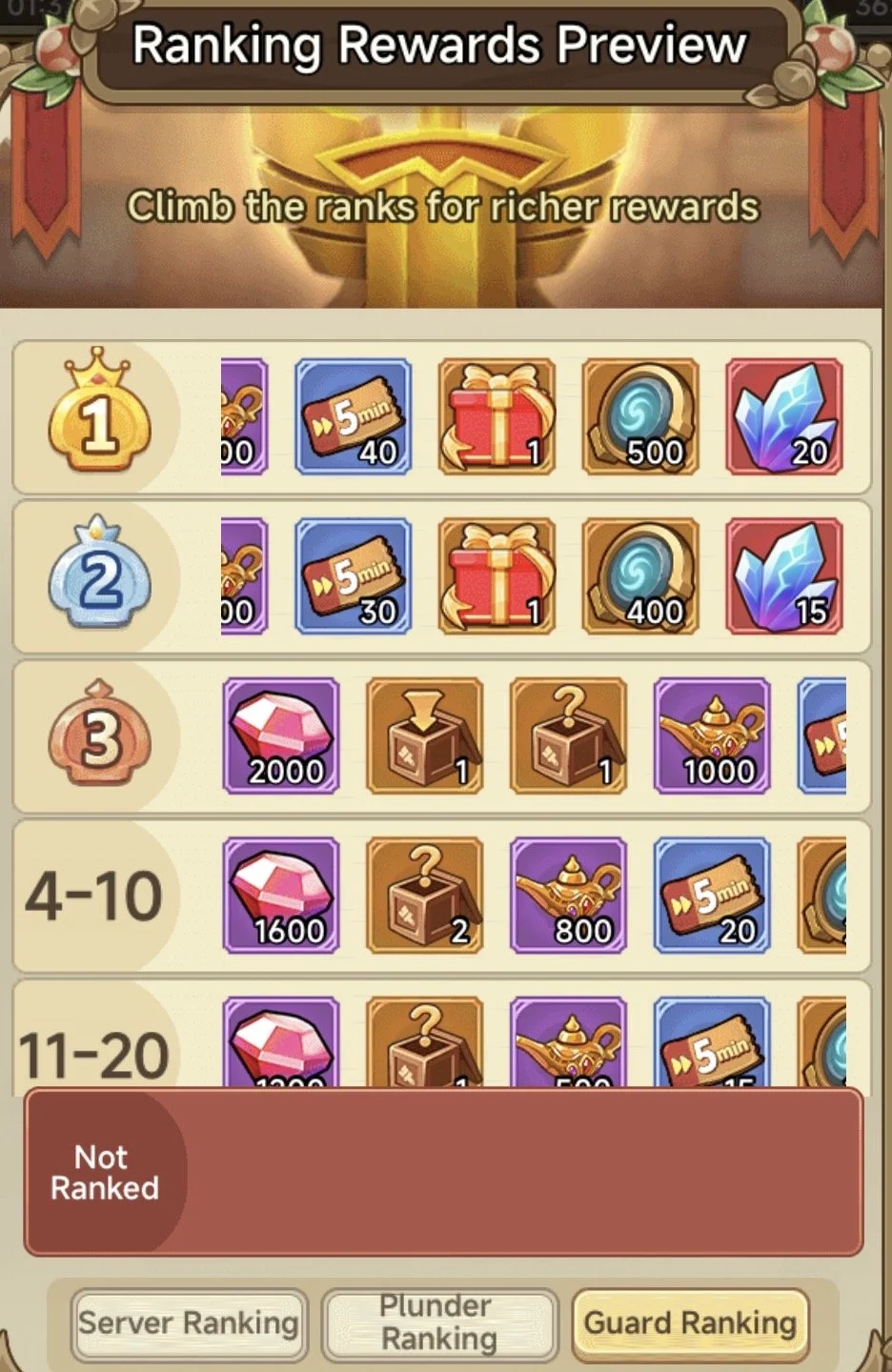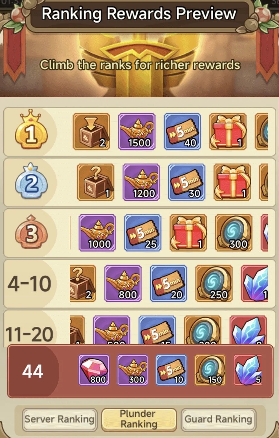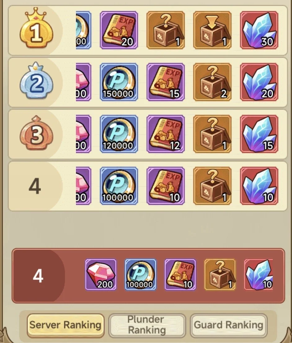 As I said at the start, the rewards from this are really good. Rankings are 3 different categories, if you can I advise trying to place high on all (but DO NOT do it in sacrifice of the Server!)